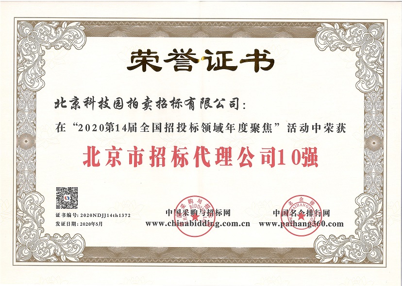 2020第14屆全國(guó)招投標(biāo)領(lǐng)域年度聚焦“北京市招標(biāo)代理公司10強(qiáng)