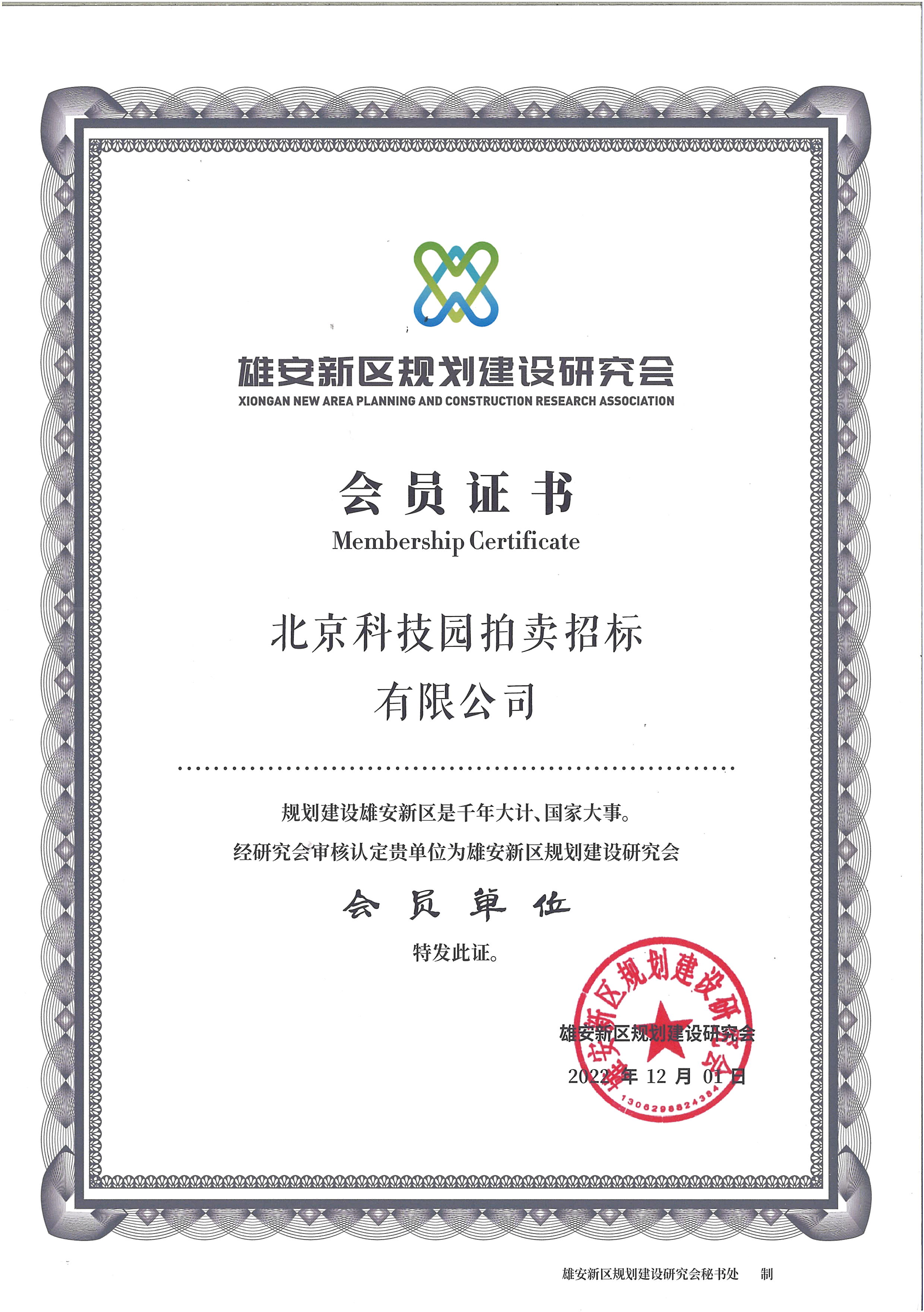 雄安新區(qū)規(guī)劃設(shè)計研究會會員證書